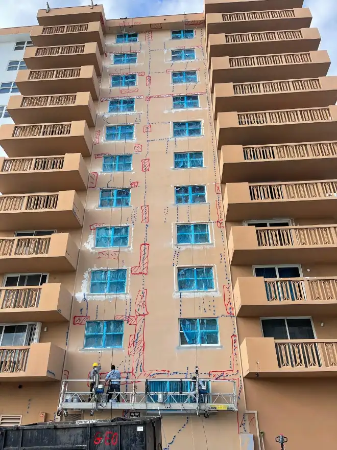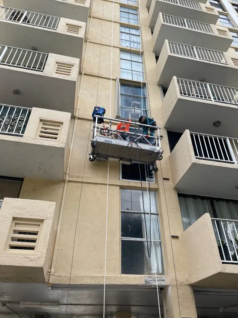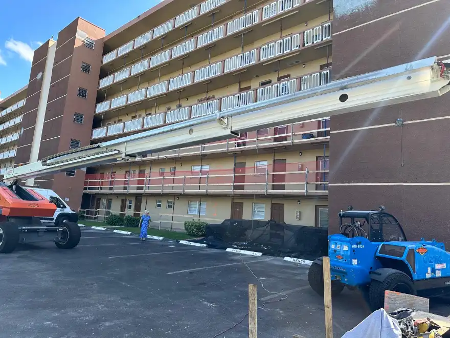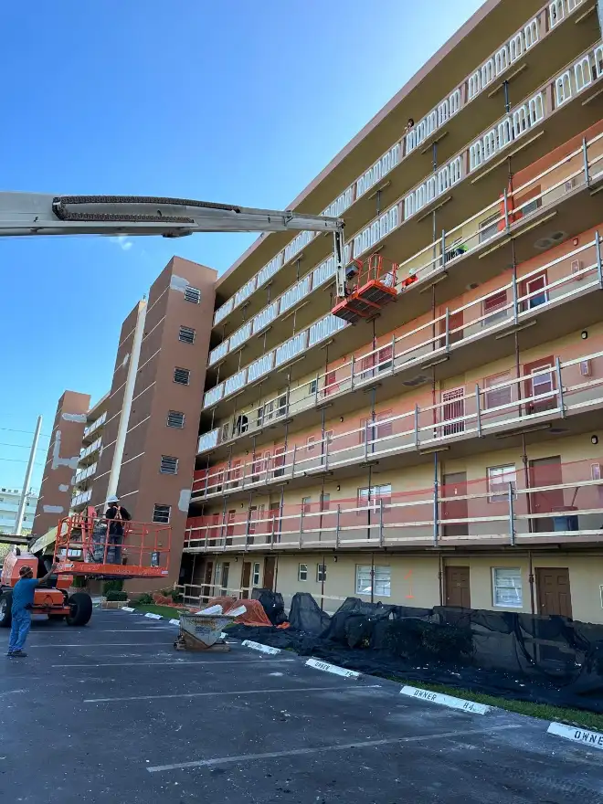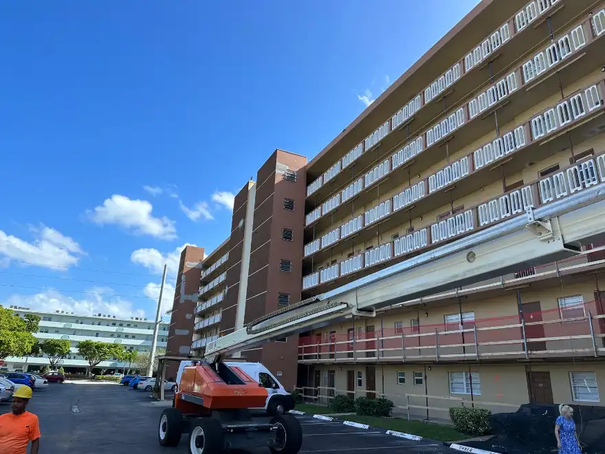 This 11-story property in Hollywood Beach underwent a comprehensive exterior restoration program. The scope of work included structural concrete repairs, balcony waterproofing, painting, and railing replacement to modernize the building and improve durability in a coastal environment.